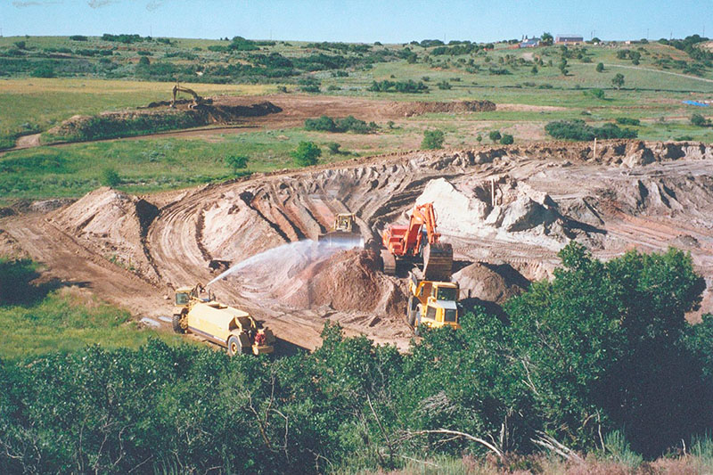 - Open and closed-pit mining with the digging of soil and rocks out of open pits to extract uranium ore, known as carnotite.