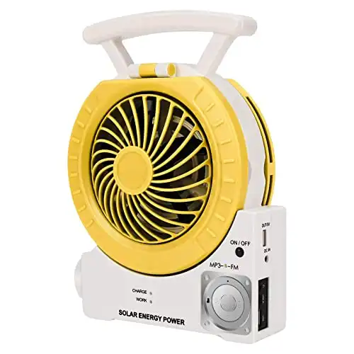 The Hereta Multi-function Solar Fan is a great option for a portable solar fan with a lot of different functions. The best feature of this model is the built-in radio and MP3 player!