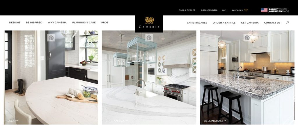 Cambria’s countertops look just like natural stone, thanks to their manufacturing processes which produce slabs with varied grain, mineralization, and colors. The brand’s products are made in the USA, and they are committed to environmentally-friendly methods from mining their raw materials to manufacture and transport of finished products.