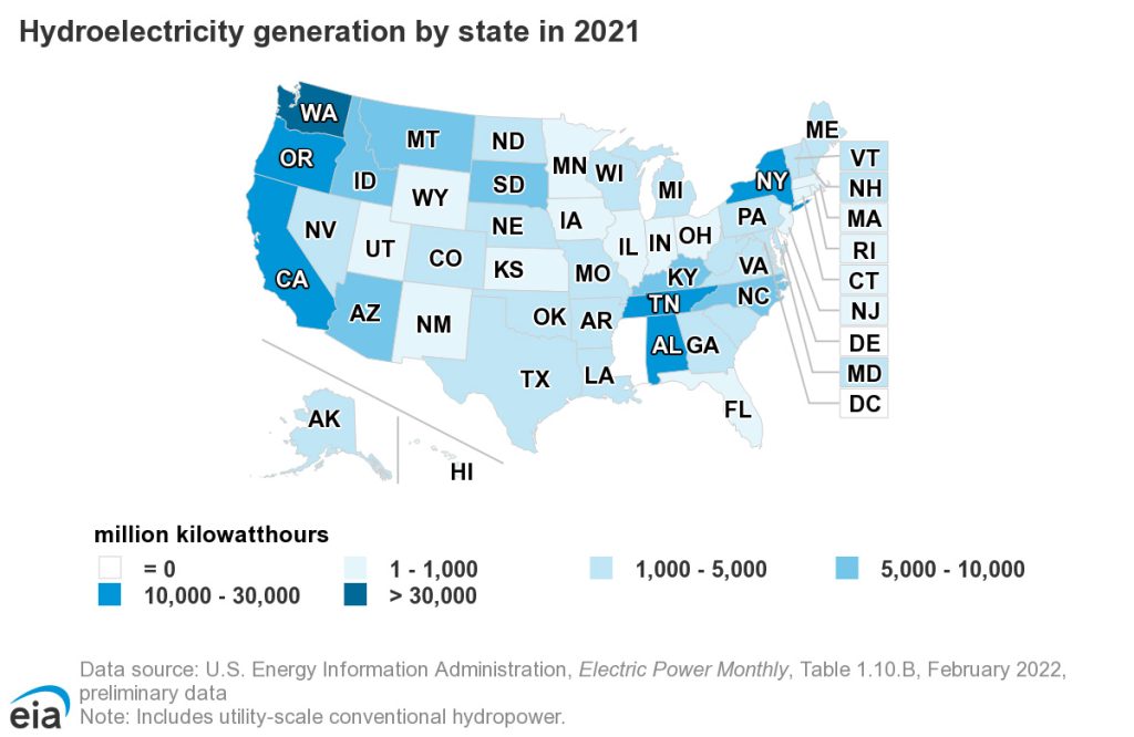 With the exception of Mississippi and Delaware, all U.S. states have some form of conventional hydroelectric power: