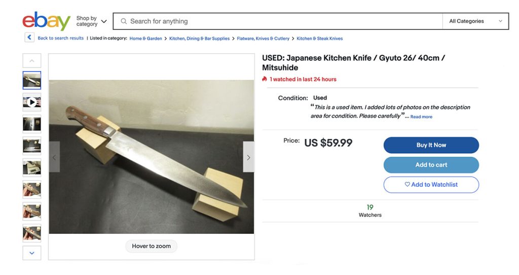 To maximize the price you get for your knives, be sure to create a strong listing that includes photos, as well as a full description, brand, and where the knife was made. Also be sure to check local laws about selling and shipping knives, as there are restrictions on this in some areas.