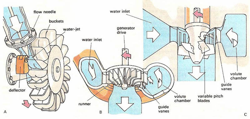 Keeping this background in mind, here are the hydraulic situations for each major type of turbine that will produce the most electricity.