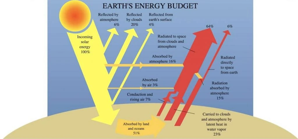 Here’s a diagram that illustrates how the sun’s radiant energy is distributed to Earth and its atmosphere:
